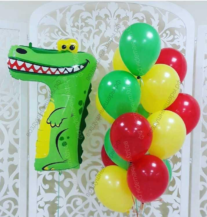 Закажите Фонтан из шаров с крокодилом на 7 лет, 15 шаров + цифра недорого с доставкой по Москве прямо сейчас!