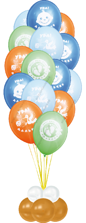Фонтан из шаров Ура мальчик , 15 шаров
