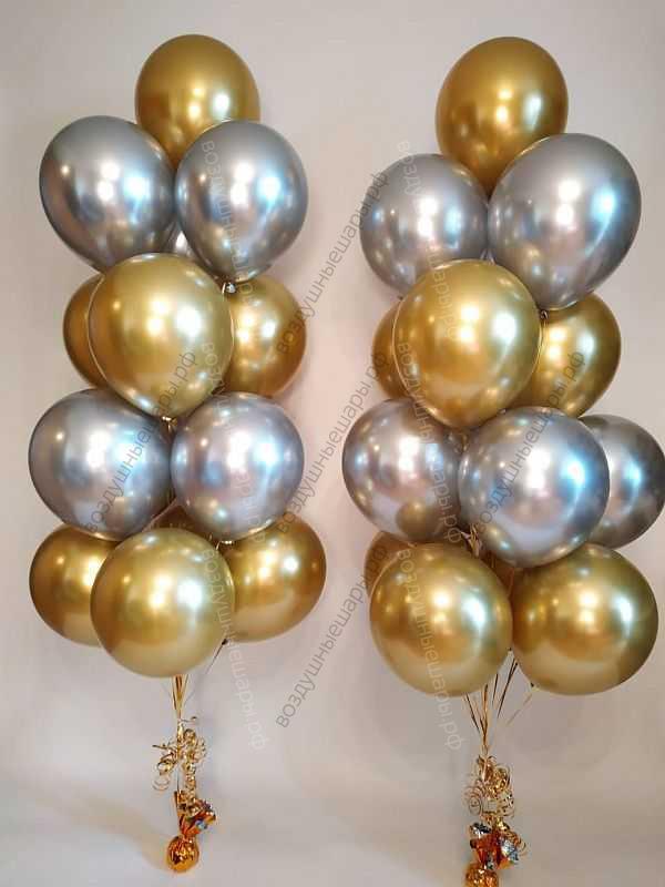Закажите Фонтаны "Хром золото и серебро" из 2 шт. по 15 воздушных шаров недорого с доставкой по Москве прямо сейчас!