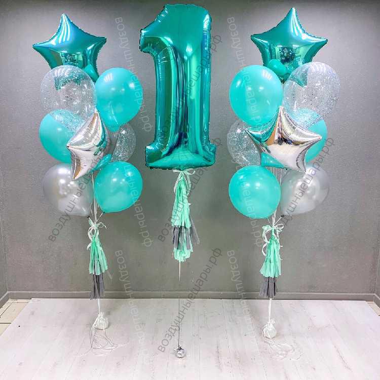 Фонтаны из серебристо-бирюзовых шаров на год "Топаз " для мальчика характеристики:
