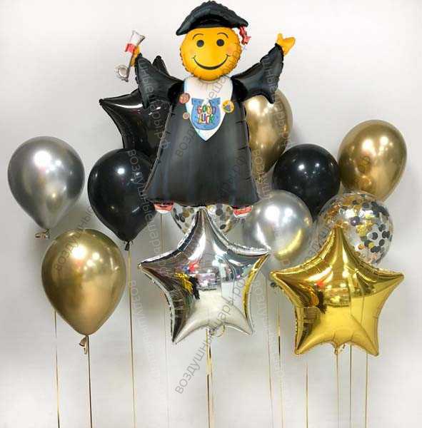 Шар с гелием Фигура, Смайл на выпускной, Желтый, 66 см.- это приятный подарок и запоминающееся украшение для вашего мероприятия!
