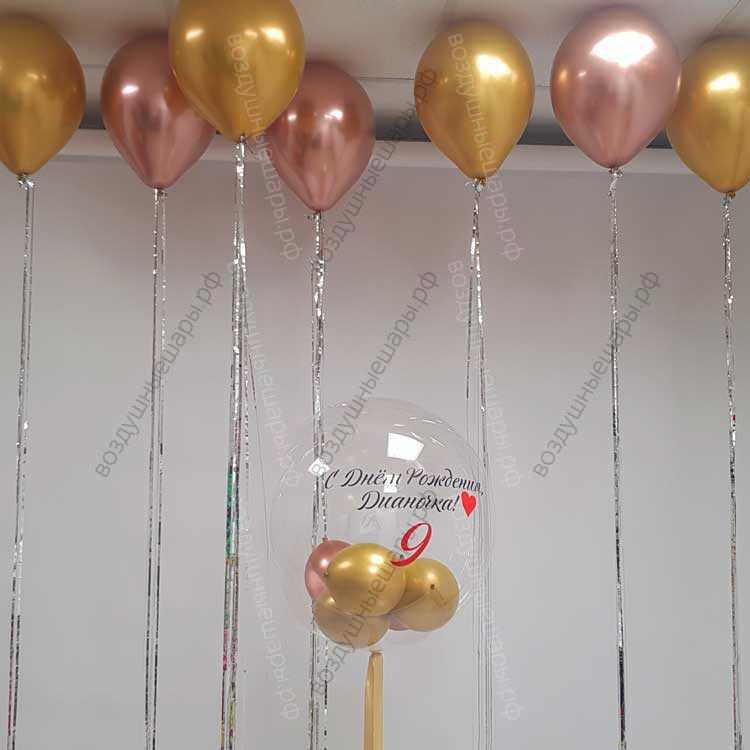 Закажите Фотозона на День рождения "Весенний дождь" из Шар баблз с надписью и шарики хром с дождиком недорого с доставкой по Москве прямо сейчас!