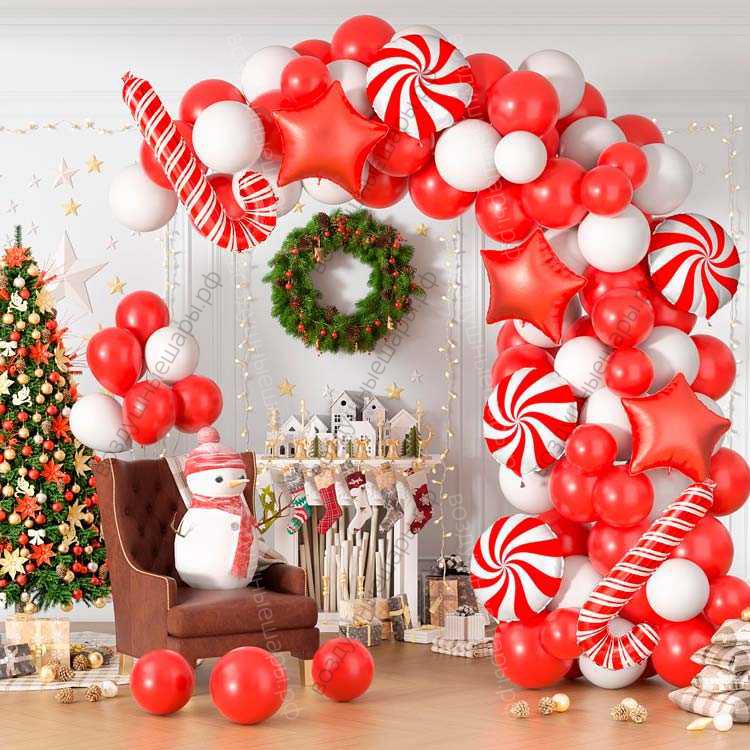 Фотозона новогодняя Красно- Белая на Новый 2026 год - это довольно большая, но мобильная новогодняя композиция из шариков, высотой от одного и до двух метров (см. Свойства товара).