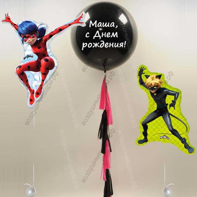 Фотозона с большим шаром и супер-героями Lady bug and Super cat - это запоминающееся украшение на праздник и дивный подарок для почитателей героев этого мультфильма или игры!