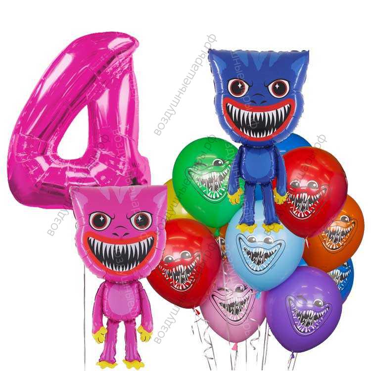 Украшение из гелиевых шариков на 4 года ребенку с Хаги Ваги и Киси Миси характеристики: