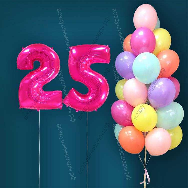 Гелиевые шары на 25 лет для женщины "Акварельный этюд", 25 шариков и малиновые цифры характеристики: