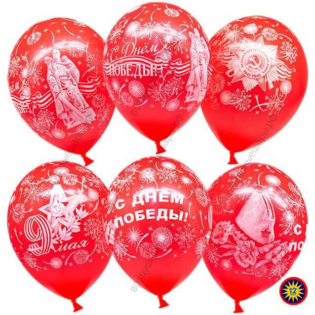 Гелиевый шар 9 Мая, С Днем Победы!, Красный , пастель, 5 ст, 30 см., как и любые воздушные шары с гелием с рисунками, могут быть прозрачными, матовыми или перламутровыми (см. название).