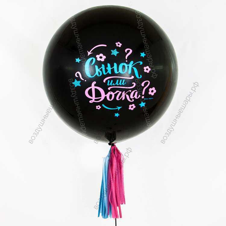 Гендер пати шар пол ребенка с гелием, 60 см.: Сынок или Дочка? - это большой черный шар, надутый гелием. Он прекрасно летает, и вы можете держать его в руках, либо выпустить под потолок. Этот шарик отлично украсит ваше гендер- пати или станет роскошным подарком для ваших любимых близких. Он очень эффектен и его цена не высока в сравнении с теми фотографиями, которые вы получите. Он может быть с длинной гирляндой тассел, светодиодной гирляндой или просто лентой (так как на фото).