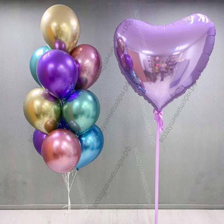 Закажите Готовое решение "Хромовая жемчужина" с большим сердцем из 10 шаров + большое сердце недорого с доставкой по Москве прямо сейчас!