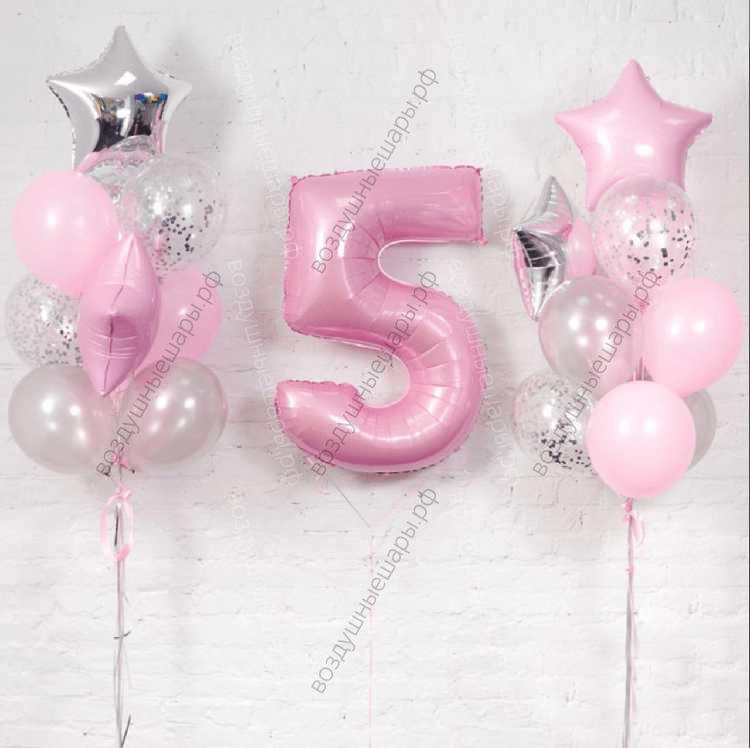 Закажите Комплект шаров на день рождения девочки "Нежнее нежного", 2фонтана+цифра недорого с доставкой по Москве прямо сейчас!