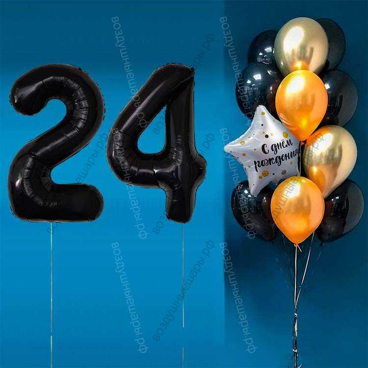 Закажите Комплект шаров с черными цифрами на 24 года Элит, 12шаров+2черные цифры недорого с доставкой по Москве прямо сейчас!