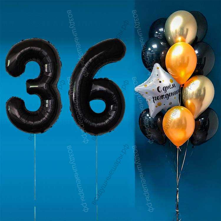 Закажите Комплект шаров с черными цифрами на 36 лет Элит, 12шаров+2черные цифры недорого с доставкой по Москве прямо сейчас!