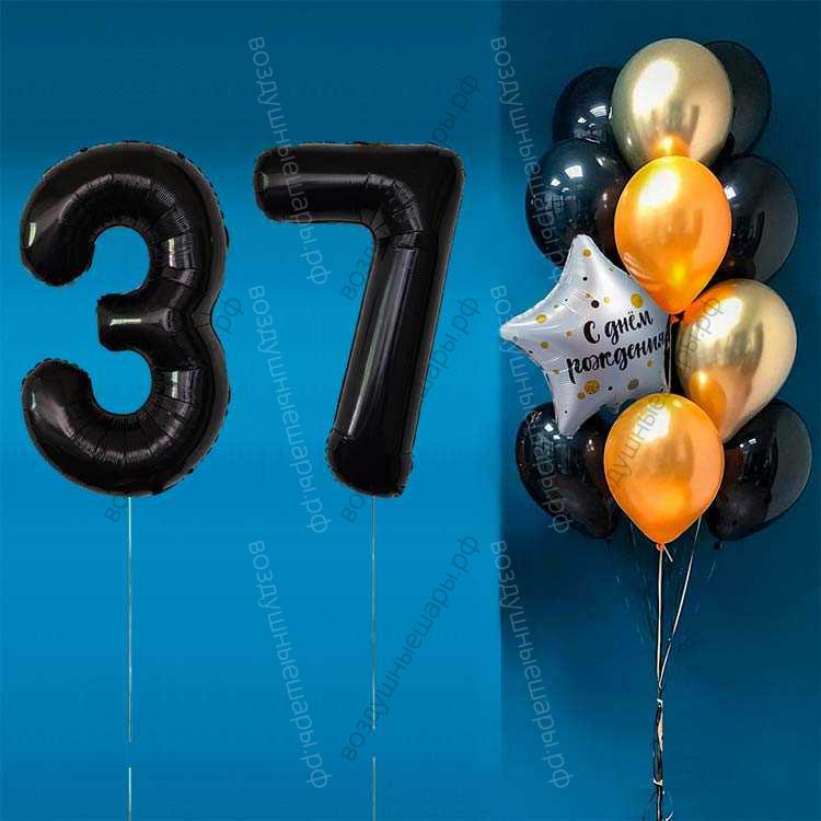 Закажите Комплект шаров с черными цифрами на 37 лет Элит, 12шаров+2черные цифры недорого с доставкой по Москве прямо сейчас!