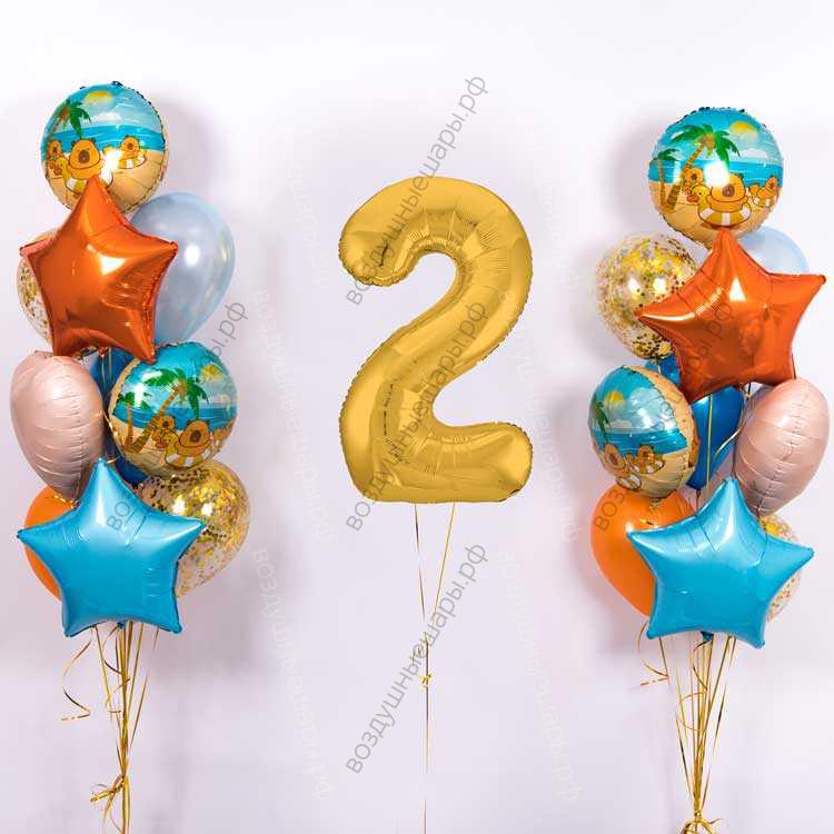 Композиция из гелиевых шаров с капибарами на 2 года из шаров это прелестный подарок и привлекательное украшение для вашего мероприятия!