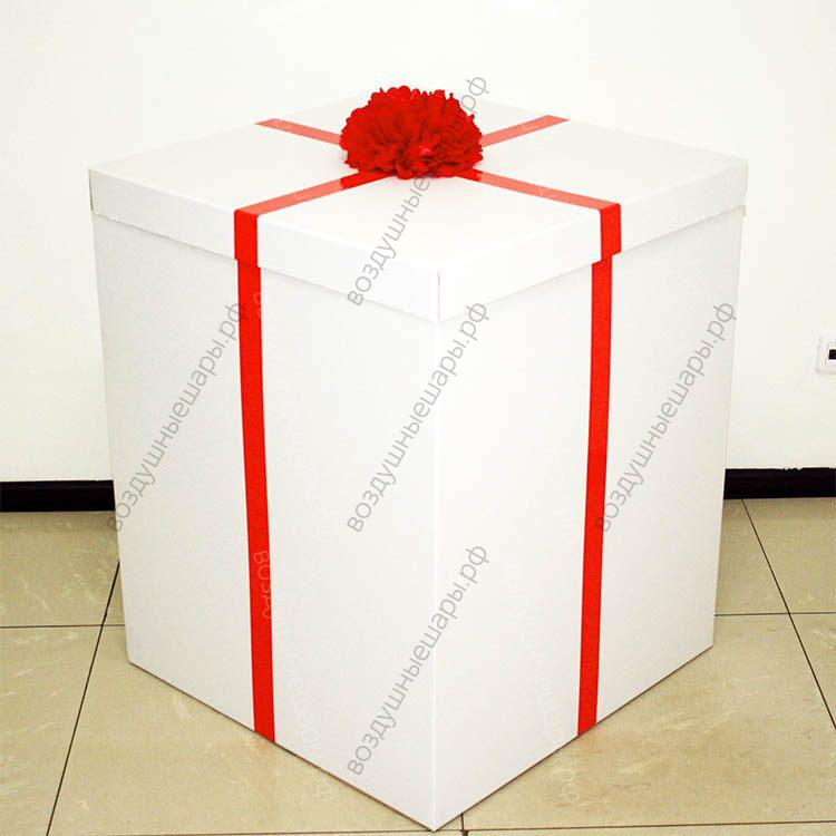 Коробка с большим прозрачным 70см шаром с конфетти - это летающие шары в огромной белой коробке с большим красным "бантом". При открытии коробки, шары эффектно вылетают из нее, создавая праздничную атмосферу.Цена коробки с шарами несопоставима с теми чувстами, которые она дарит!
