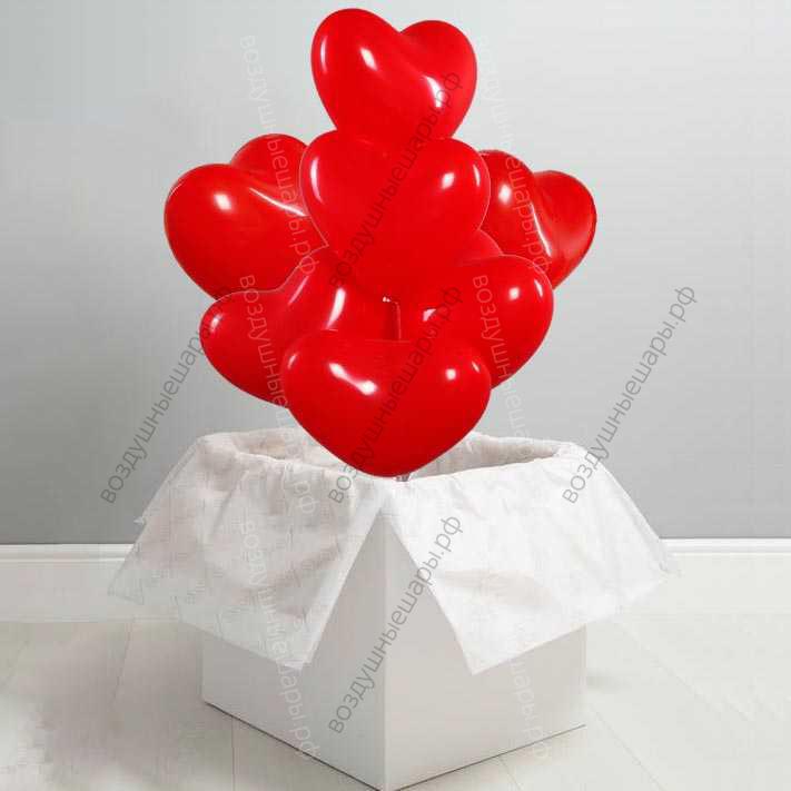 Коробка с красными шарами сердечками «В подарок Любимке!», 11 сердец 30см