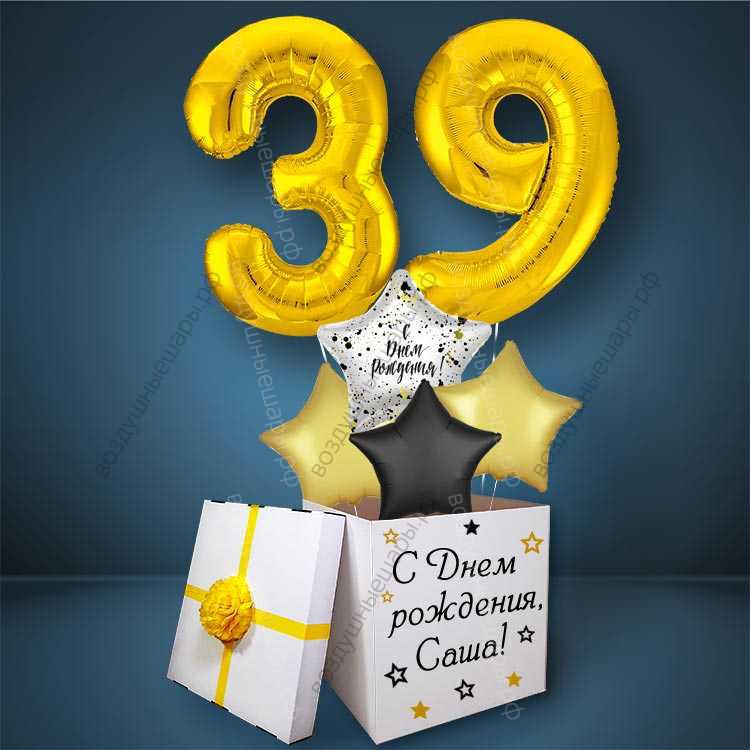 Коробка с шарами на День Рождения 39 лет, со звездами и золотыми цифрами - это прекрасный подарок для дорогого Вам человека (или же для себя самого :) на День рождения или юбилей!