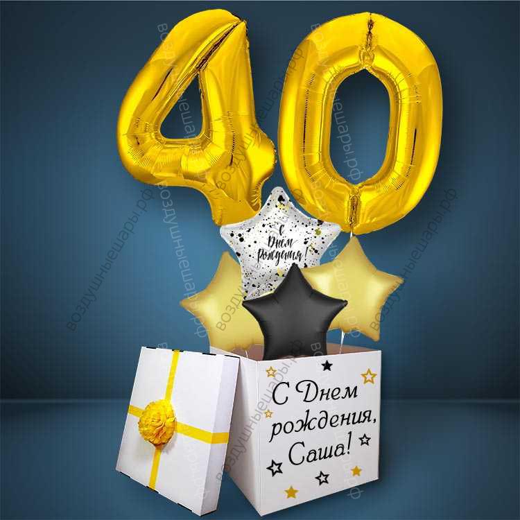 Коробка с шарами на День Рождения 40 лет, со звездами и золотыми цифрами характеристики:
