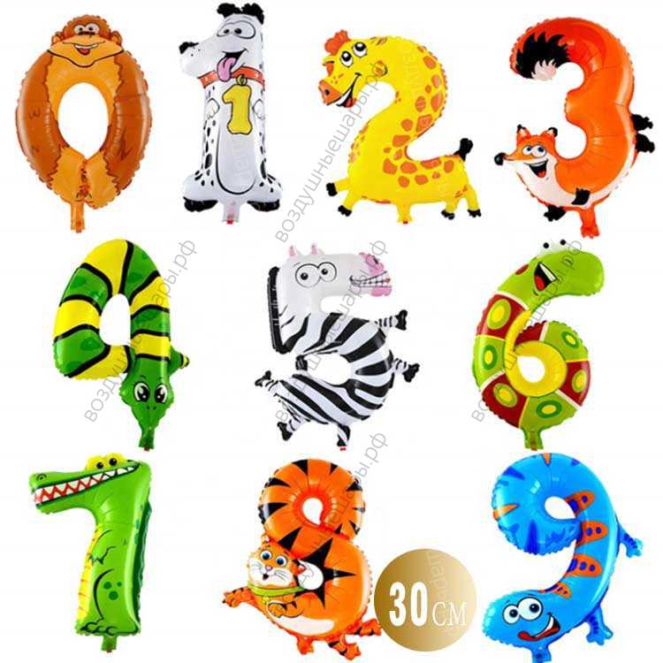 Мини- цифры Животные, надутые воздухом, не летающие, 30 см. - это необычный подарок и привлекательное украшение для вашего торжества!