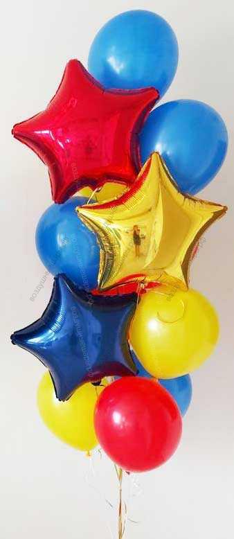 Закажите Набор гелиевых шаров в красных, желтых и синих цветах из 10 шт и 3 звезды недорого с доставкой по Москве прямо сейчас!