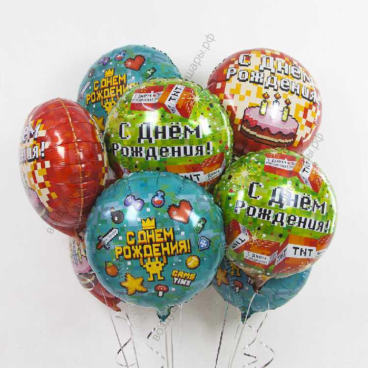 Закажите Облако фольгированных кругов С днем рождения! Пиксели с доставкой прямо сейчас!