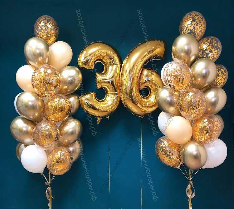 Закажите Оформление воздушными шарами "Блеск", 48 шт круглых и 2 циферки недорого с доставкой по Москве прямо сейчас!