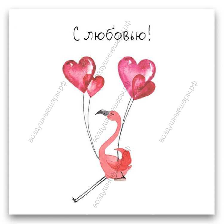 Открытка С любовью! "Фламинго и сердечки", 8х8 см - порадует Ваших близких и передаст им Ваши теплые слова. Мы заполним эту открытку для Вас и прикрепим ее к шарам, или вложим вложим ее в подарочную коробку.