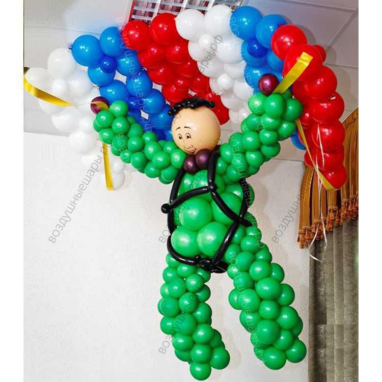 Фигура из шаров Десантник ВДВ с парашютом триколор из шаров это бесподобный подарок и эффектное украшение для вашего торжества!