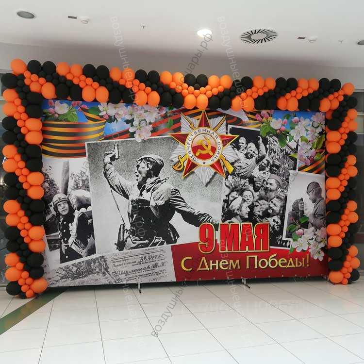 Плоская гирлянда Георгиевская лента из оранжево-черных шариков - изготавлена из нелетающих шаров, надутых воздухом. Она ставится на пол и крепится к стене или, если нужна дополнительная устойчивость, то на специальные стойки. Арка из воздушных шаров (дуга из шариков) - это практичное и недорогое украшение на праздник. Арки из шариков часто используют для оформления входных групп магазинов, салонов, ресторанов..