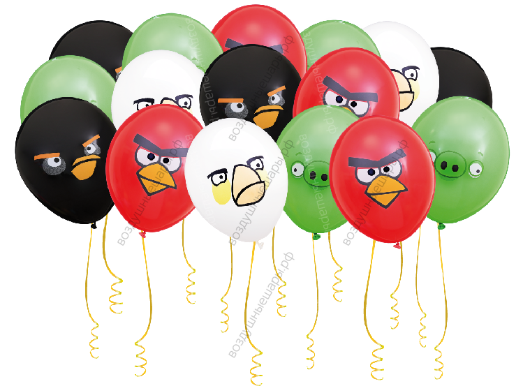 Шары под потолок Энгри Бердс - это гелиевые, летающие шарики с красивыми лентами и изображениями героев игры.