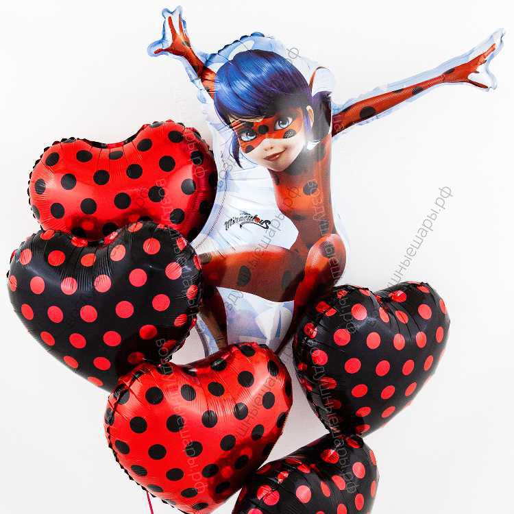 Подарок из шаров любимой дочке с фигурой Леди Баг, 5 сердец + фигура