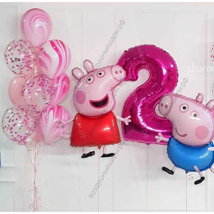 Закажите Подарок из шаров Свинка Пеппа на 2 года девочке с доставкой прямо сейчас!