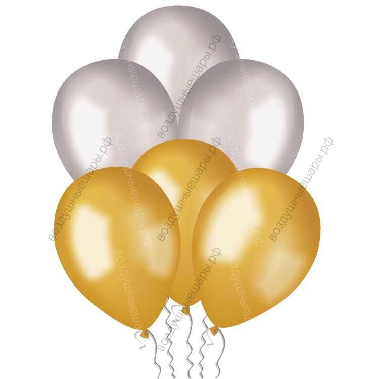 Серебристо Золотые шары с гелием металлик, 30 см. характеристики: