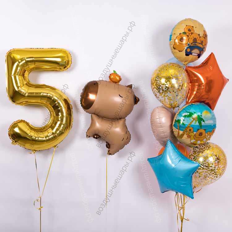 Сет из шаров с гелием на День рождения, 10 шариков, цифра и капибара