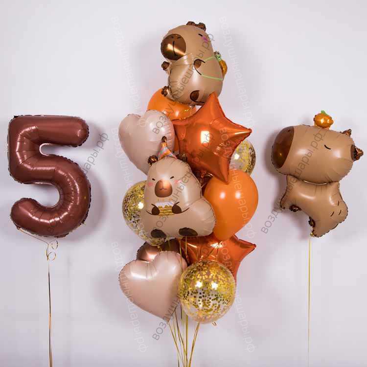 Сет из шаров с гелием с капибарами, 13 шариков, цифра и фигура