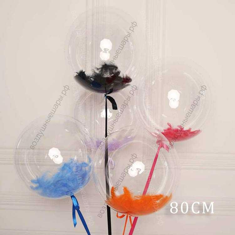Закажите Шар Баблз прозрачный, гелиевый с перьями, 80 см, 32" прямо сейчас!