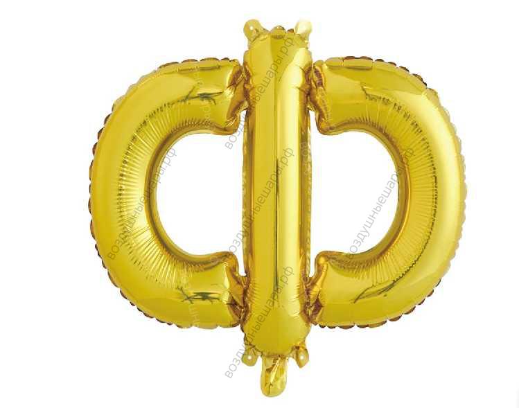 Шар- буква "Ф" русского алфавита, надутая воздухом, 41 см - это объемная буква русского алфавита, изготовленная из металлизированной пленки золотого цвета. Из таких букв очень удобно составлять поздравительные надписи в композициях с другими воздушными шариками.