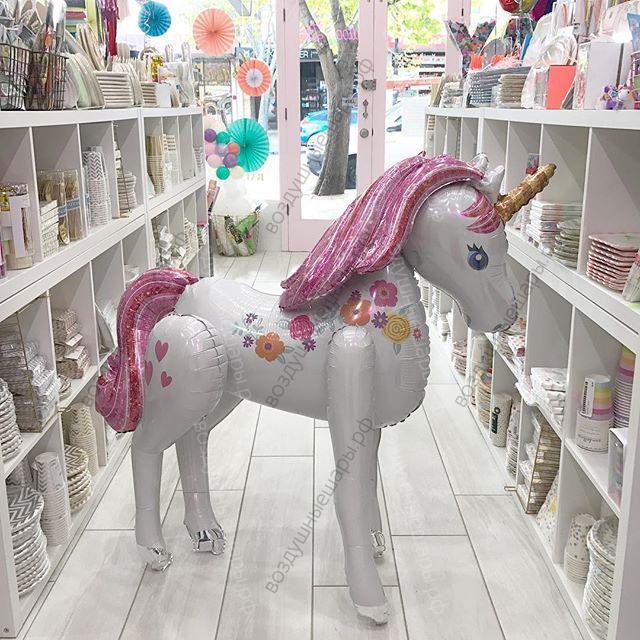 Ходячий шар Шар большой цветочный Единорог, 116 см будет выглядеть интереснее (а вы получите скидку), если дополнить ее большой гелиевой цифрой или другим топпингом (см. справа от изображения).