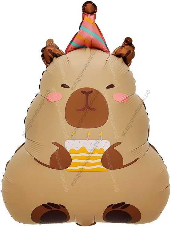 Шар с гелием Фигура, Капибара с тортиком, 69 см, 1 шт.