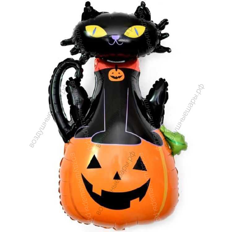 Шар с гелием Фигура, Кошка на тыкве, 97 см.- это идеальный подарок и привлекательное украшение для вашего торжества!