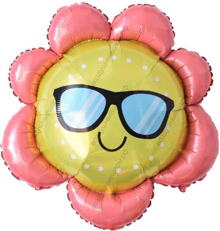 Шар с гелием Фигура, Цветок в солнечных очках, Розовый, 86 см.- это милый подарок и стильное украшение для вашего события!