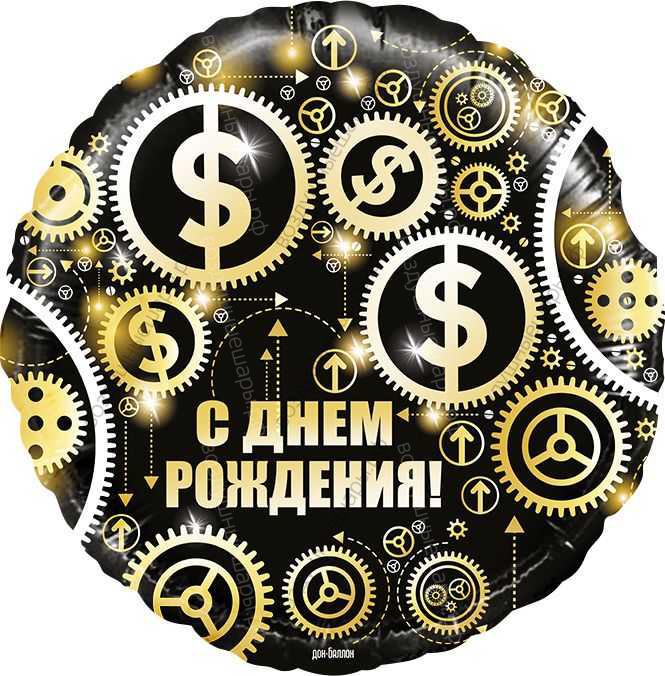 Шар с гелием Круг, С Днем Рождения , доллары, Черный, 46 см.- это бесподобный подарок и эффектное украшение для вашего торжества!