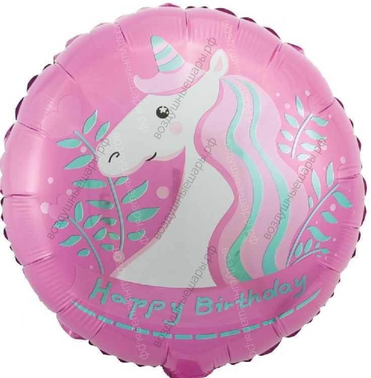 Шар геллиевый Круг, С Днем Рождения , единорог, Розовый, 46 см.- это бесподобный подарок и стильное украшение для вашего мероприятия!