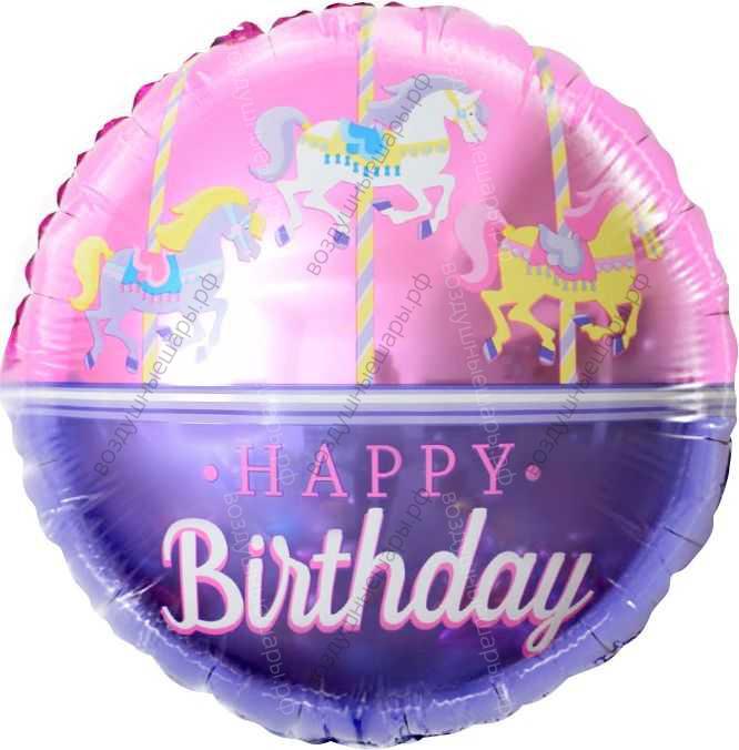 Шар с гелием Круг, С Днем Рождения , карусель, Розовый, 46 см.- это незабываемый подарок и прекрасное украшение для вашего праздника!