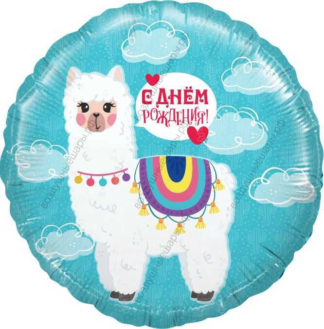 Шар с гелием Круг, С Днем Рождения! , лама альпака, Бирюзовый, 46 см.- это оригинальный подарок и очаровательное украшение для вашего мероприятия!