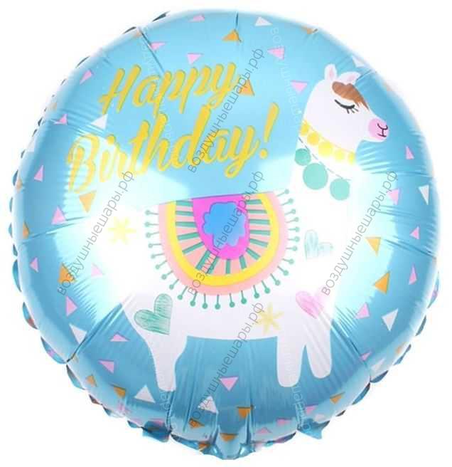 Шар с гелием Круг, С Днем Рождения! , лама, Голубой, 46 см. характеристики:
