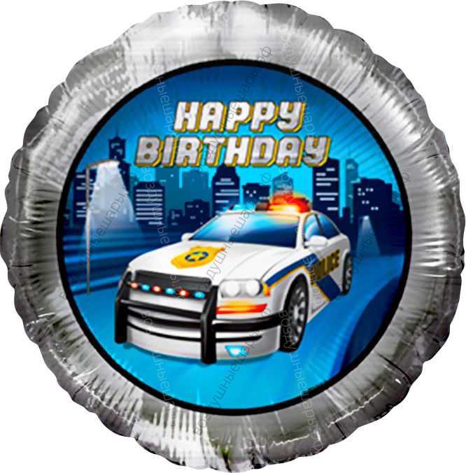 Шар с гелием Круг, С Днем рождения! , полицейская машина, 46 см.- это идеальный подарок и привлекательное украшение для вашего события!