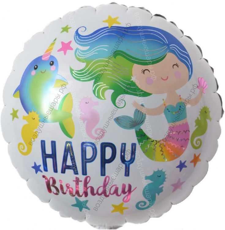 Шар с гелием Круг, С Днем Рождения , Русалочка и нарвал, , Happy Birthday, 46 см. характеристики: