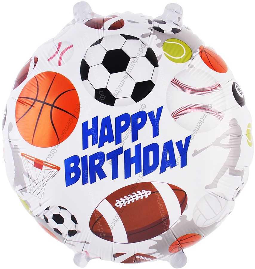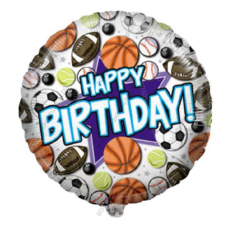 Шар с гелием Круг, С Днем рождения , спортивные мячи, Белый, 46 см., 1 шт.- это восхитительный подарок и запоминающееся украшение для вашего события!