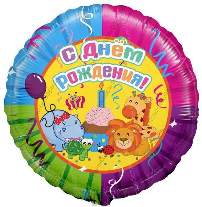 Шар с гелием Круг, С Днем рождения , Вечеринка животных, 46 см. характеристики: